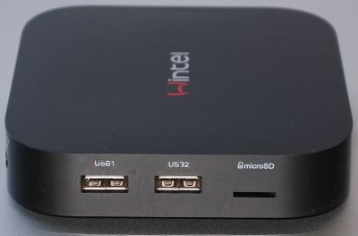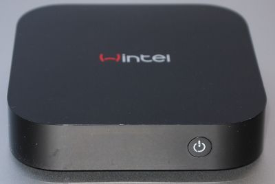 A gépecske kísértetiesen emlékeztetett valamire. Nagyjából 5 másodperc után jöttem rá, hogy az Apple TV-t koppintották le dolgos kínai kezek milliméterre pontosan. A gép tetejére egy Wintel felirat került, az előlapon pedig egyetlen bekapcsoló gomb. Az anyagválasztás nem éppen szerencsés, mert kb. 2 másodperccel a letörlés után már poros a gép. Minél többet törölgetem, annál koszosabb, mert statikusan feltöltődik és mágnesként vonzza a port. Próbáltam pár képet készíteni, ami kevés sikerrel járt az egyöntetű fekete kivitelnek. Azt mindenesetre elmondható, hogy nem fotogén alkat.