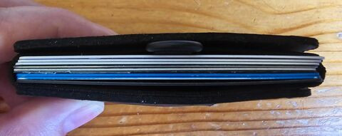 Mind a kártya-, a bankjegy- és az apró tartó remekül használható. Ráadásul a szükséges kártya könnyebben kiválasztható, mint a hagyományos, Ridge féle szendvicstárcáknál, mivel könnyebben szétválaszthatóak a tárca rugalmasabb alapanyaga miatt. Egy pont levonásra került, mert a pénztárcát lezáró elasztikus szalag véleményem szerint túl keskeny, így könnyen megcsavarodik, ill. az NFC chipet könnyen blokkolhatja az apró, mivel a chip épp az apró tartó mögött található.