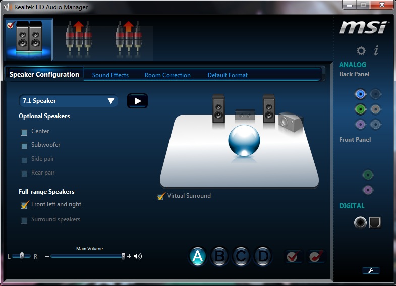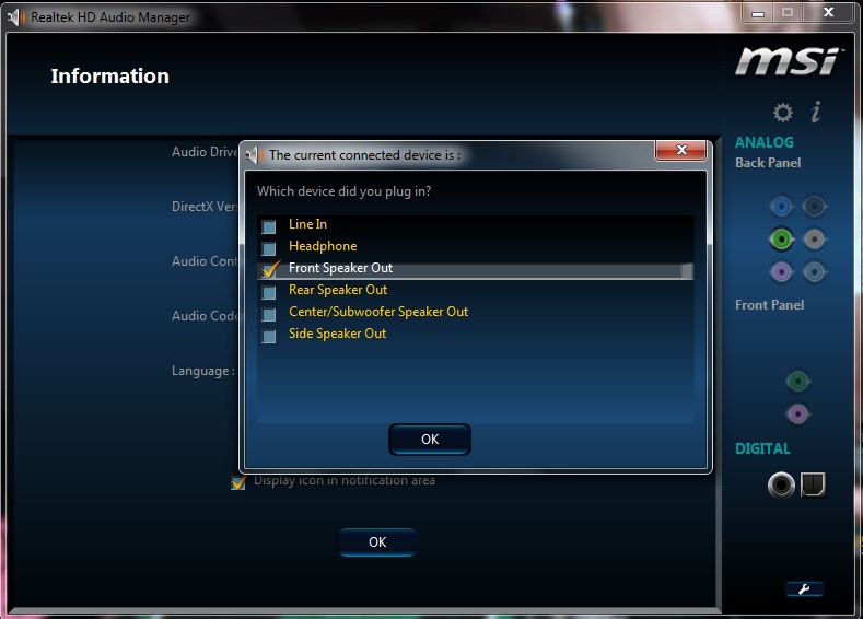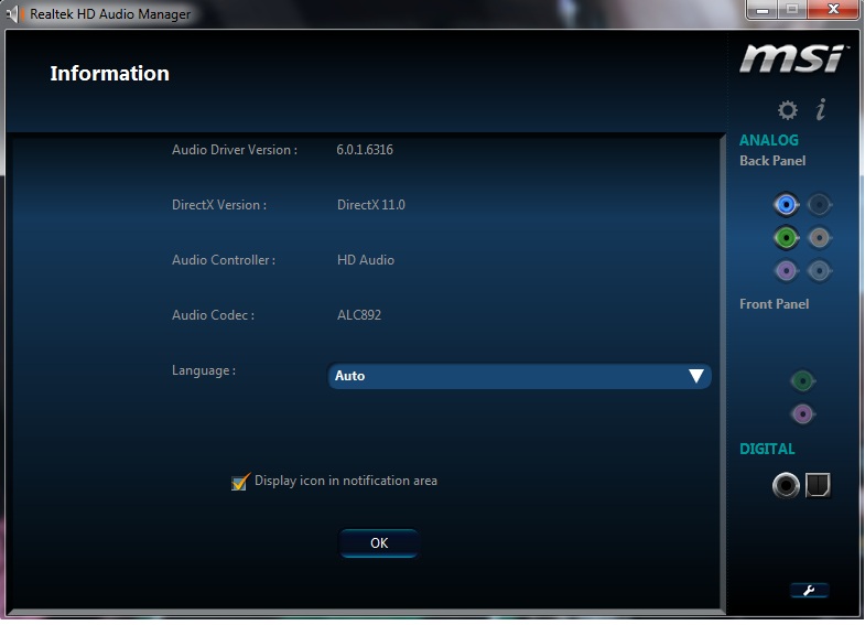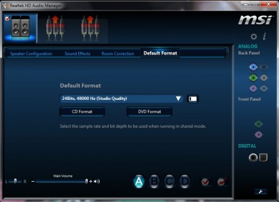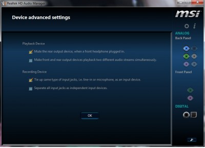 A Realtek Audio program kezelőfelülete.![]()