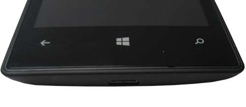 Az előlap "egybeüveg", látunk itt Nokia logót, a 3 kötelező WP kezelőgombot (kapacitív, de nincs háttérvilágítás :( ) és egy kijelzőt. Négy colnyi helyen osztozik a 480x800 darab pixel, jó zsúfoltan vannak, remek az összhatás, átlagos használatnál kifogástalan képet kapunk, egyszerűen nem látni pixeleket.