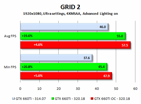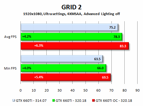 A PC-n valaha volt egyik legsikeresebb arcade autóverseny folytatását mind a játékostársadalom, mind a szakma nagyon várta - a gamerek nyilvánvaló okokból, az elemzők pedig azért, mert a játék a Dirt Showdownban debütált innovatív 3D motor továbbfejlesztését használja, és arra lehetett számítani, hogy a fejlesztés körül bábáskodó AMD hardverein a játék jelentősen jobban fog futni. Mivel az AMD előnye nagyrészt leszűkíthető az Advanced Lighting bekapcsolására és a Global Illumination effektre, az egyik mérésben ezeket kikapcsoltam, a másikban pedig be. Íme az eredmények: