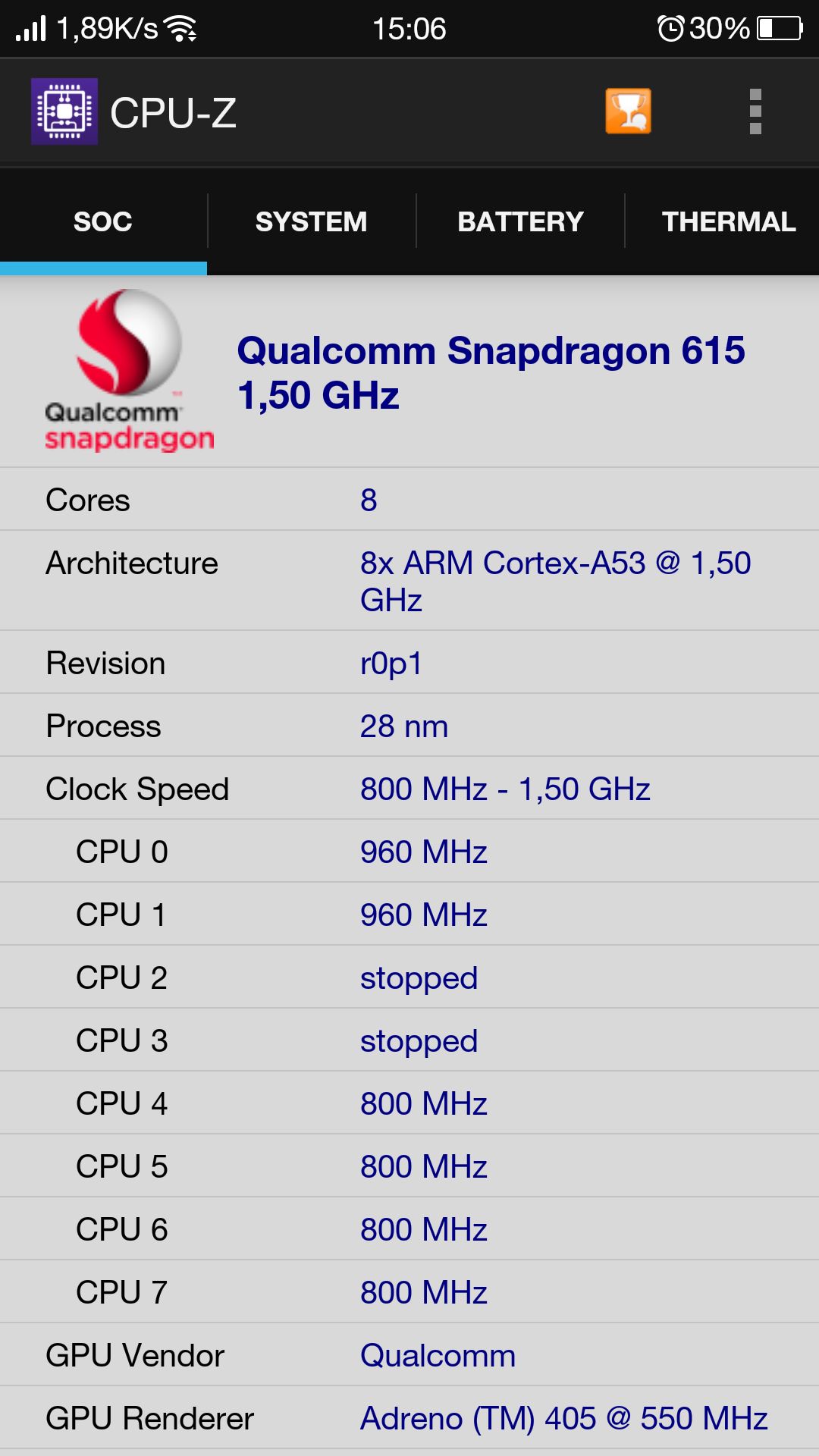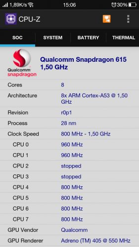 Snapdragon 615-tel csak pozitív tapasztalataim vannak. Teljesen igaz, hogy nem a benchmarkokra lett kihegyezve, de ez még közel sem jelenti azt, hogy gyenge lenne, sőt. Ezelőtt elég bika telefonjaim voltak (sg alpha, S5, Note3) és működési sebességben ugyanott van. Nekem elsősorban az a lényeg, hogy a való életben működés közben mit produkál és nem az, amit egy teljesen szintetikus tesztben, ennek megfelelő körülmények között teljesít. (Komolyabb játékok mind akadásmentesen futnak.)