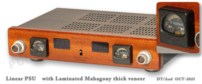 2x20VA lineáris labortáp, rétegragasztott mahagóni svartni előlappal