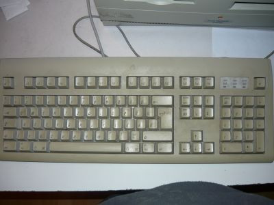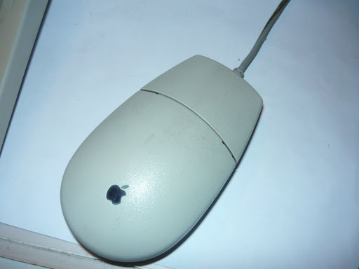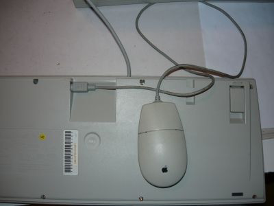 Bizony: az egeret a billentyűzetbe kell dugni, egy PS/2-höz nagyon hasonlító, de azzal természetesen nem kompatibilis, ADB nevű dugóval, mely egyébként pont ugyanolyan, mint a billentyűzeté. Mivel a gépet nem készre szerelve kaptam, és nem láttam meg elsőre a billentyűzet alján lévő egércsatlakozót, így némi fejtörést okozott, hogy vajon ki volt az a csökkent értelmű az Apple-nél, aki úgy tervezte meg ezt a gépet, hogy csak egy csatlakozót rakott hátulra, így meg vagy egér, vagy billentyűk, de egyszerre nem? Ez aztán a Think Different!