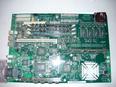 A bal felső sarokban van a tápegység csatlakozója, alatta és kicsit jobbra a SCSI vezérlőé, mellette a floppy, majd kicsit fel a két IDE csati.