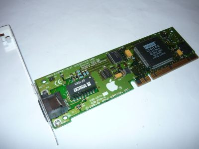 Apple Ethernet II CS 10 megabites, DEC chipes hálókártya, leírása szerint CS (Communication Slot) -ba illeszkedik, ami pedig ezen a Riser kártyán található meg 2 PCI foglalat társaságában.