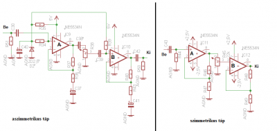 Van még egy lényeges különbség: zavarjelek mindig vannak. Ha a GND a referencia, akkor a GND-n a GND-hez képest sosincs zavar jel. Egy eltolt referencián viszont mindig van zavar a GND-hez képest, azt a fokozatok felszedik, tovább erősítik. Az elnyomásukra további kondenzátorokat kell beépíteni, de az elnyomás már sosem lehet 100%-os.