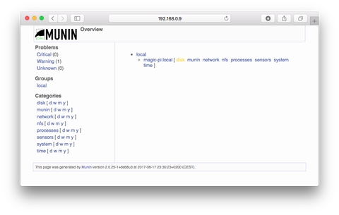 Újraolvasatjuk a WEB szerver konfigurációját, és már működik is a magic-pi/munin oldal.