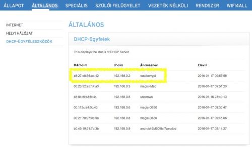 Ahhoz, hogy megszólítsuk, tudnunk kell, mi az IP címe. Mivel DHCP-n kér IP címet, a helyi hálózatban pedig a router-ünk a DHCP szerver, ott kell kutakodni.