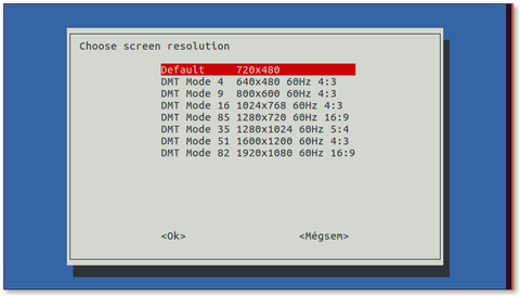 Ha az analóg kimenetre kötött megjelenítőt használsz, akkor ne itt tekerd el a felbontást, hanem szerkeszd át a /boot/config.txt megfelelő sorát. A framebuffer_ kezdetü sorok elöl töröld ki a # jelet.