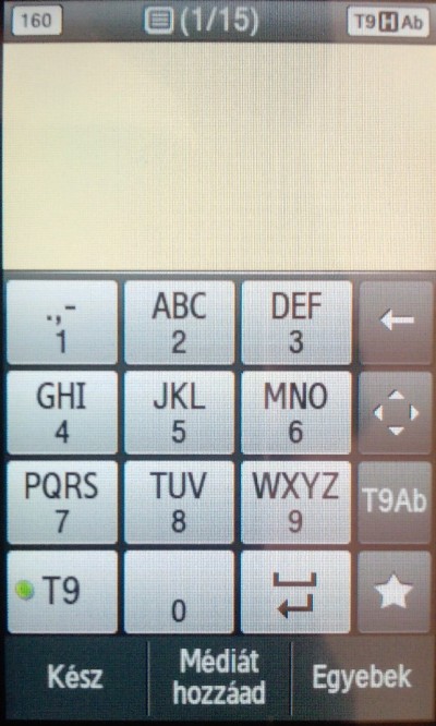 Jól kezelhető a virtuális billentyűzet, attól eltekintve, hogy ha megforgatom a telefont, akkor nem történik semmi, sajnos teljes kiosztású billentyűzetről ne is álmodjunk. A készülék sms kapacitásáról több információt is hallottam, de 500 és 1300 sms között van valahol. MMS-ben a legnagyobb küldhető és fogadható az a 300 kb-os. Hívásnaplók rendszerezése nagyon tetszett, lehet csak nekem újdonság, de a nevekhez külön rendszerezi az eseményeket, a hívástól az üzenetekig.