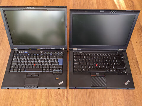 Balra a T400, jobbra pedig egy T430. Ez utóbbi volt az utolsó vastag ThinkPad, ugyanis a T440-nel kezdődött a vékony dizájnú, lecsupaszított, ma is használatos forma.