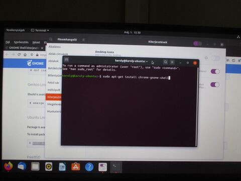 Persze erre is van megoldás. Szépen el kell ballagnunk az extensions.gnome.org oldalra, és fel kell telepíteni a chrome-gnome-shell csomagot.