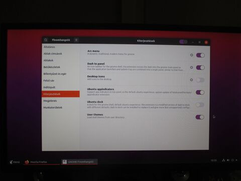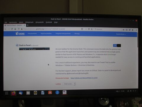 Utána pedig jöhet a Dash to Panel kiterjesztés bekapcsolása a GNOME asztali felületen.