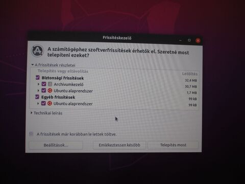 Első körben gyorsan (körülbelül 2 perc) feltelepítettem a nagyjából 64 MB-nyi frissítéseket.