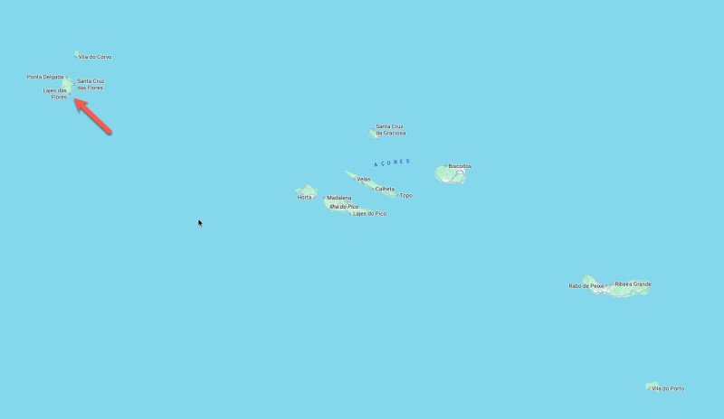 Fél órával a beszállás előtt a kapunál derült ki, hogy a járatunk nem közvetlenül a célállomásra megy, hanem szezonon kívül még megáll Horta repterén is (Faial sziget). Ott újra ki kellett szállni, mivel tankolták a gépet és biztonsági okokból ilyenkor senki nem maradhat a fedélzeten. Ismét várakozás következett, majd 45 perc után felszálltunk, és újabb 45 perc múlva megérkeztünk Ilha das Floresre, az Azori-szigetek, sőt Európa egyik legnyugatibb pontjára.