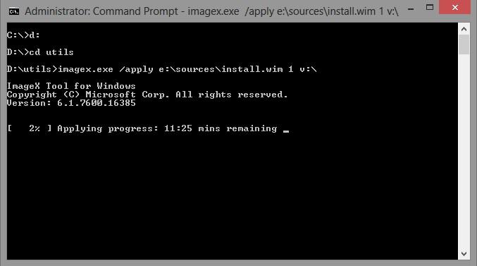 imagex.exe /apply e:\sources\install.wim 1 v:\