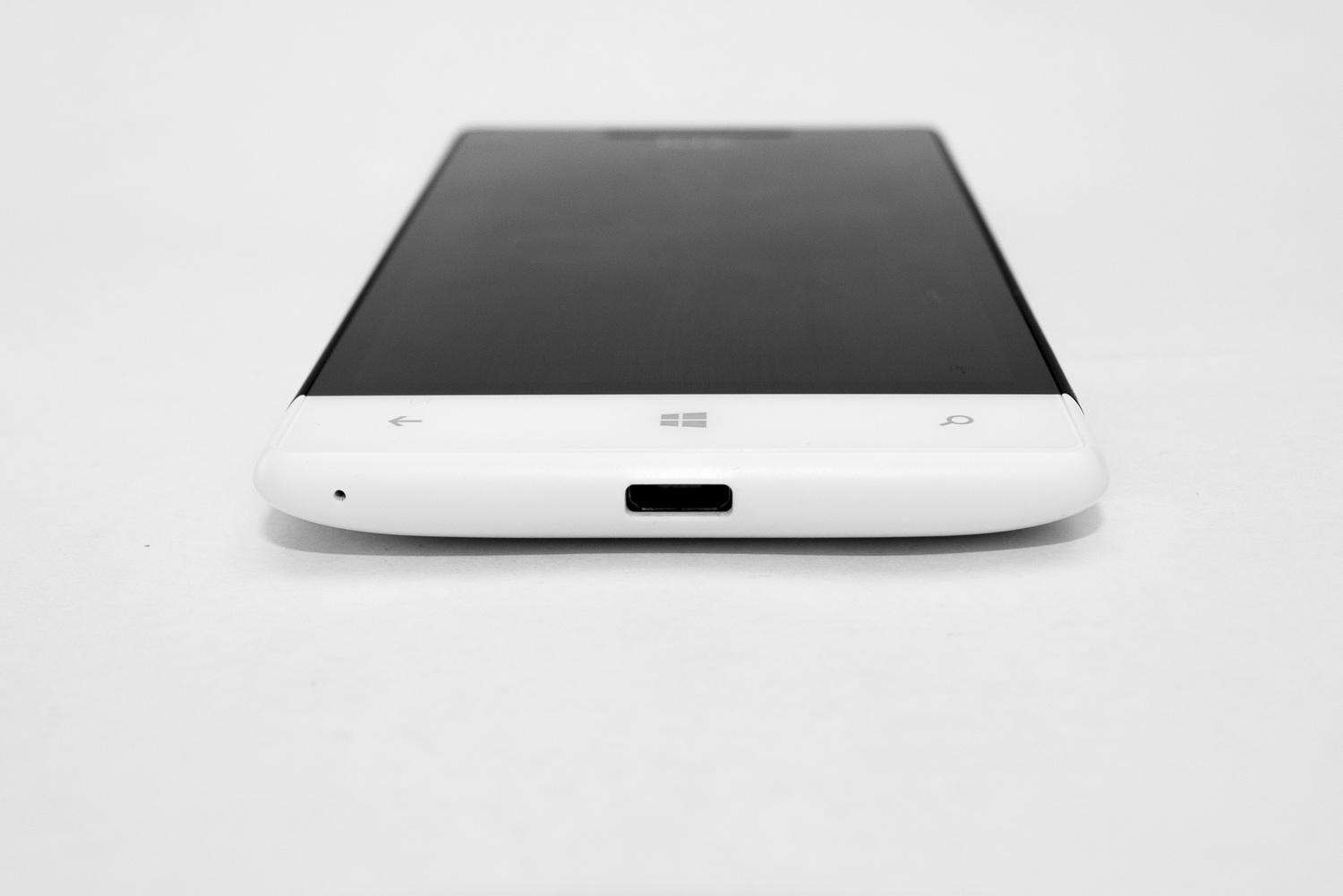 A kijelző felett a hangszóró és abba építették bele az állapotjelző LED-et. Ez a LED egyébként csak a töltöttséget jelzi, ami szerintem kicsit fura, mert az elmulasztott értesítéseket is jelezhetné, ha már ott van. A kijelző alatt a megszokott Windowsos billentyűk a vissza, a home gomb és a keresés. Az egyetlen, ami változott itt a 7-es szériához képest, hogy a home gomb már a Windows 8 logóját használja.