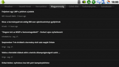Ez a kedvenc alkalmazásom, minden reggel ezt olvasom a kávém mellett. Friss információk a nagyvilágból és Magyarországról, valamint időjárás előrejelzés. Tökéletesen működik ez is.