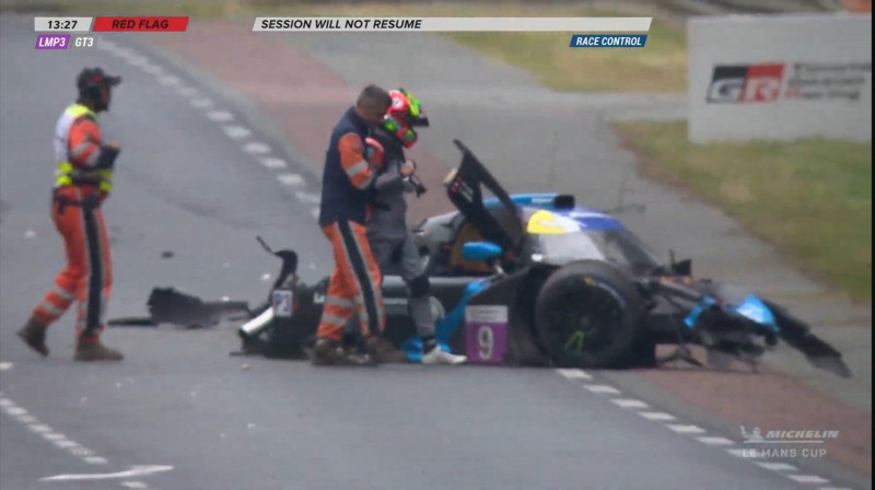 Csütörtök este 20 órakor kellett volna elkezdődnie a Le Mans-i 24 órás legjobb rajthelyeiről döntő Hyerpole-nak, azonban a kvalifikációt megelőzően óriási baleset történt a betétszéria, a Michelin Le Mans Cup első futamán. Louis Rossi csapódott a szalagkorlátnak egy LMP3-as autóval: mivel visszajátszást nem mutattak, így azt nem tudni, pontosan hogyan történt az incidens, mindenesetre a korlátot is szerelni kell, ezért legalább félórás csúszás vár a 24 órás legjobbjaira.