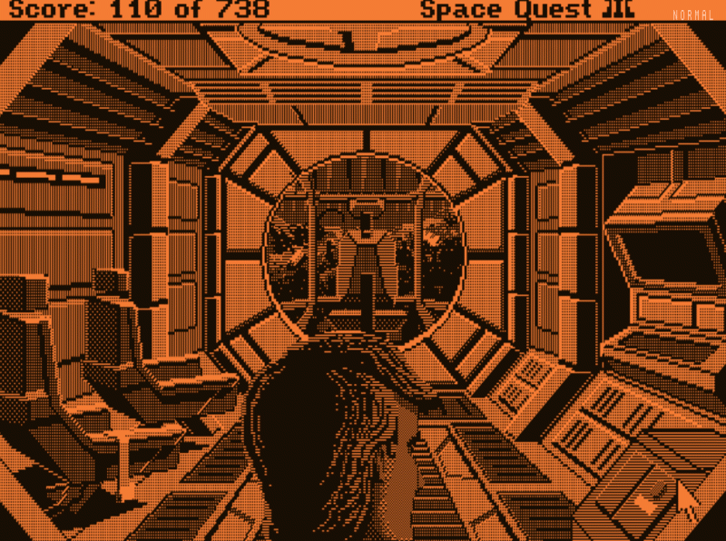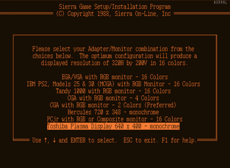 Meglepően éles képe van, pedig csak CGA felbontás, mégis sokkal szebb mint a korabeli CRT monitoroknak.