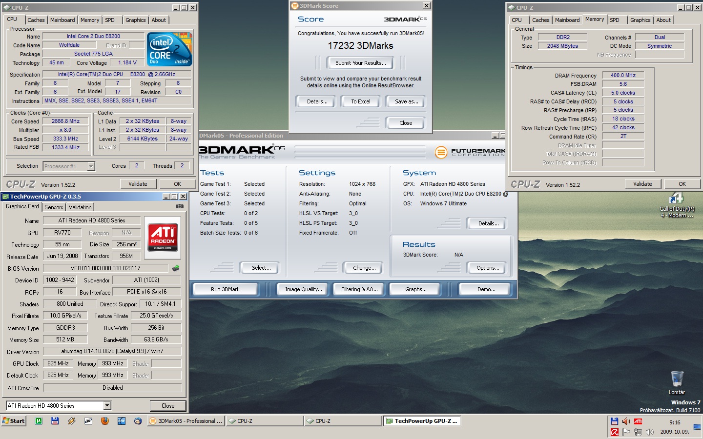 E7300 3.6-on és egy EAH 3870 Top alapórajelen: 20494, 64-es Win 7-en, 9.10-es beta catalyst.