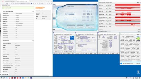Ami hirtelen meglepett a cpu score, 97000 lett, igencsak adagolja a frameket a vga-nak. Itt jön az érdekesség, úgy túltolja, hogy az msi ab-ben beállított értékeimre kifagy. A power limit max-ra tolásával is, ha nem csinálok se core, se vram tuningot, akkor is. Nvcp-ben kellett visszaállnom az energiatakarékosra a maximum teljesítményről. 2260 mhz-en szalad nagyon sok helyen, akkor dobja el magát, amikor erre még rá akar tenni. Teszt közbe mindig fut az msi an és rt, hogy lássam is a hőfokokat és teljesítményt.
