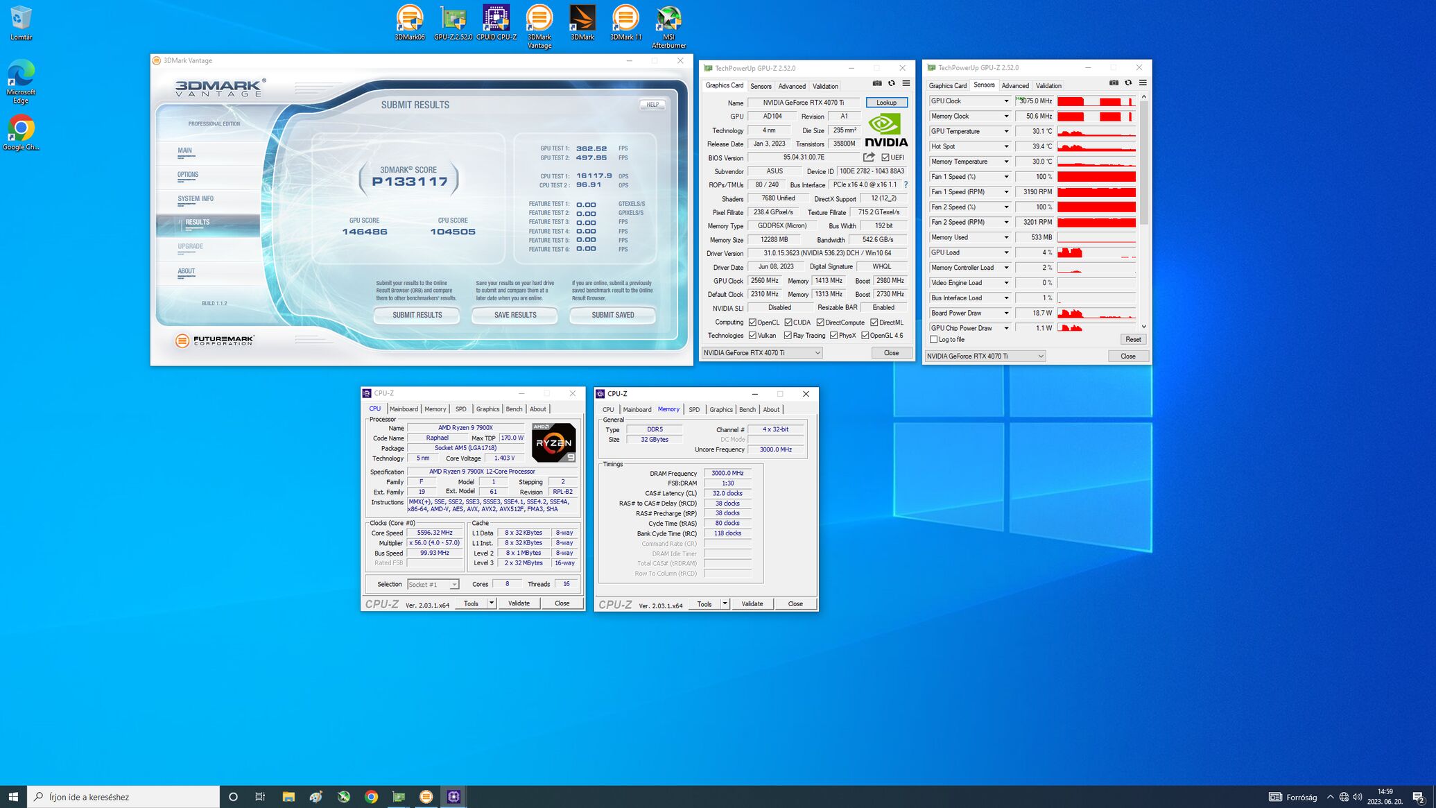 - Memória 2x16Gb DR 3600C14 teljesen stabilra hozva [4133MHz CL15 15 15] -re.