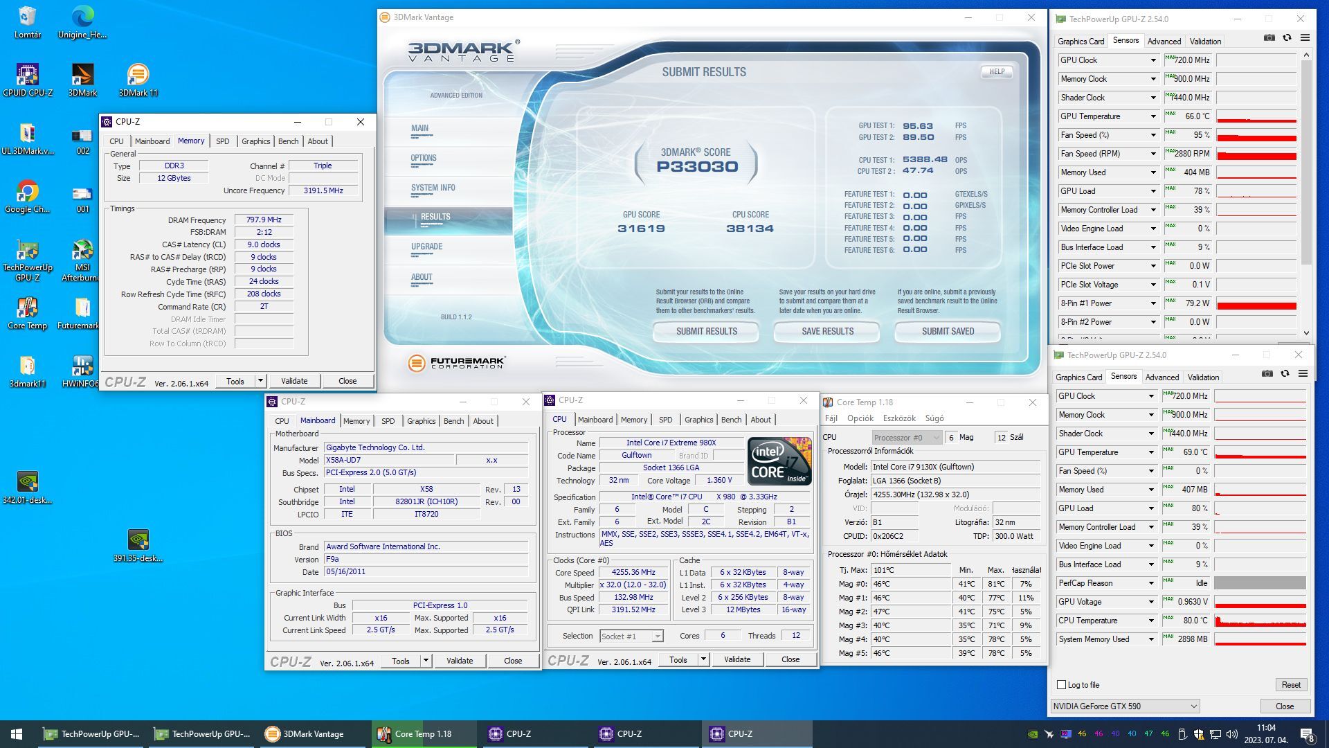 2 kártyával csináltam a Vantage-t, egy 3080 (gyári víz), és egy 3080Ti (lég).