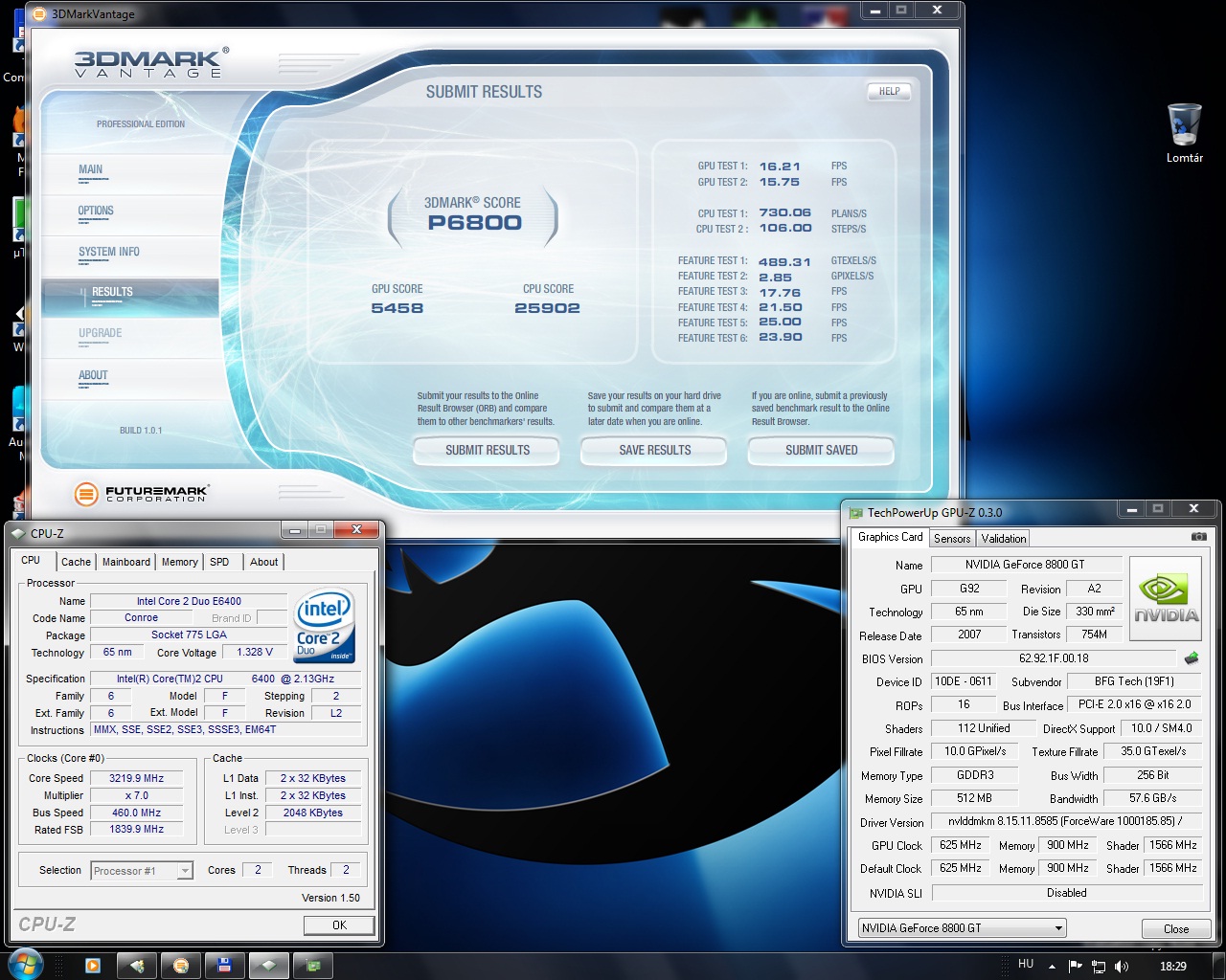 3dmark Vantege ban elértem 7466 pontot (GPU: 7829 ; CPU: 6554)