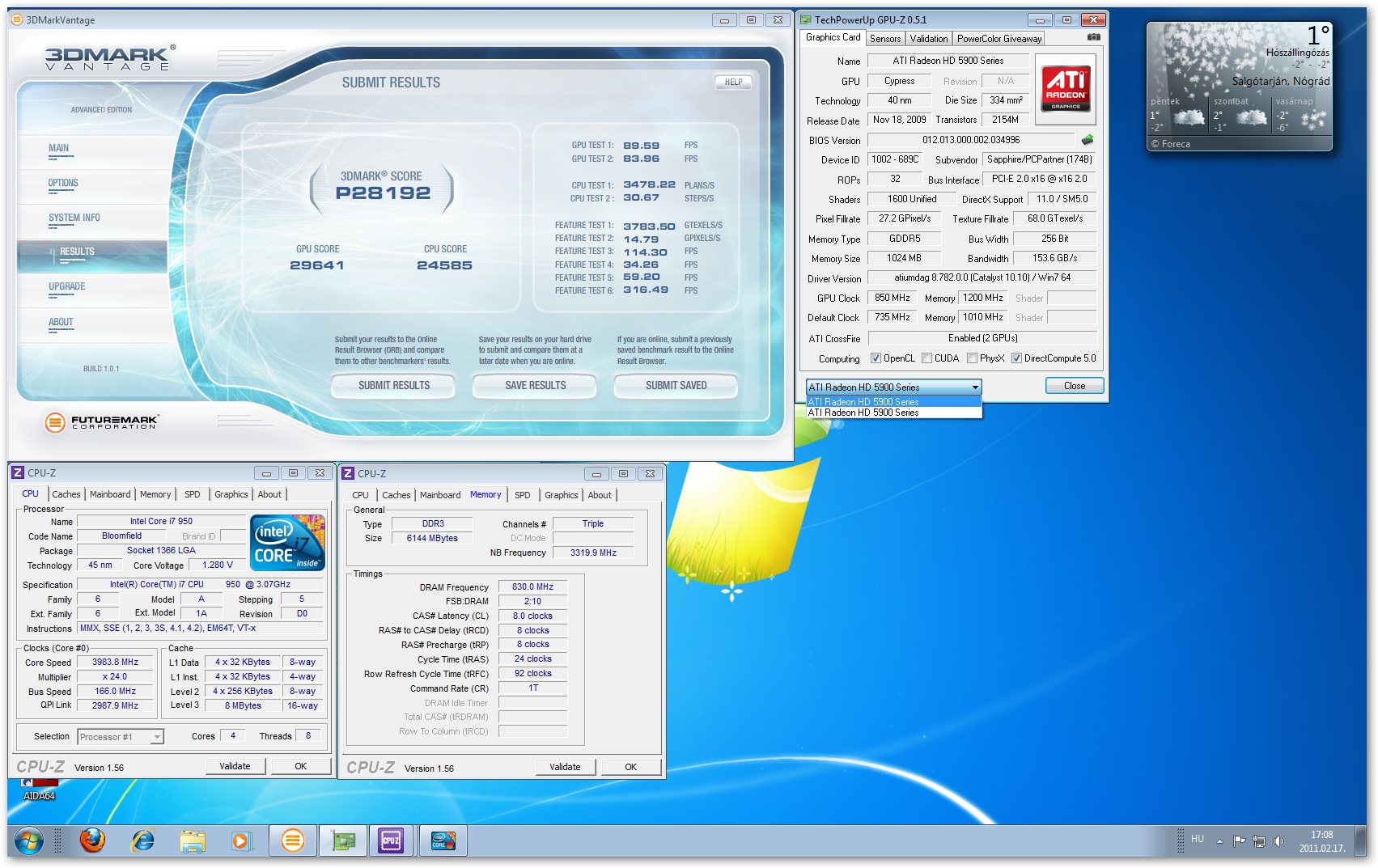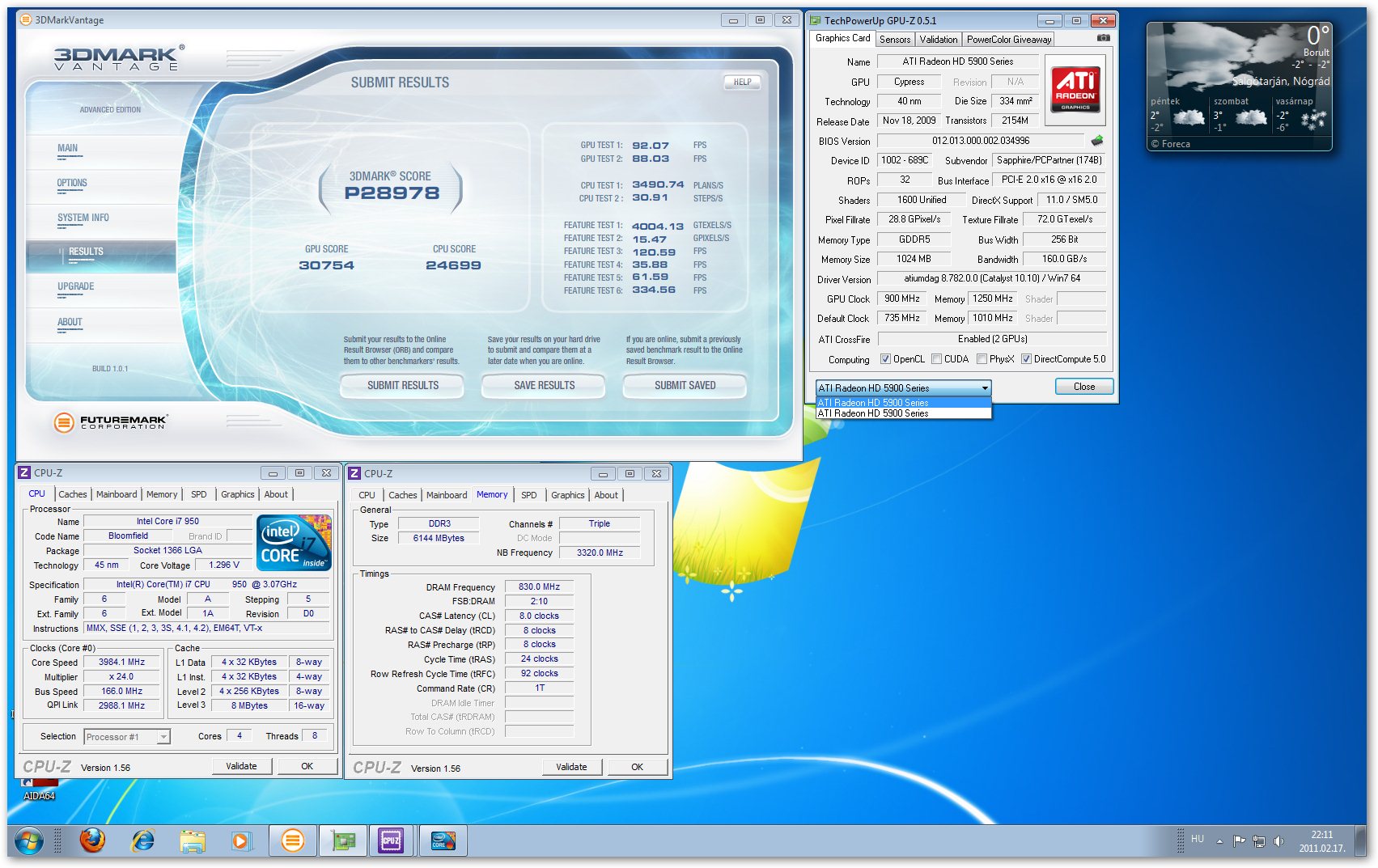 3-as kategóriába kérem szépen. Az eredmény Sapphire Vapor-X HD4890-nel született. Antituningos fos ráadásul, ezt az eredményt 1,6V GPU fesz mellett vitte, ahol már az OCP limitét is módosítanom kellett a szerény voltmodon kívül, mert 1,5V GPU felett áramlimitbe futott...