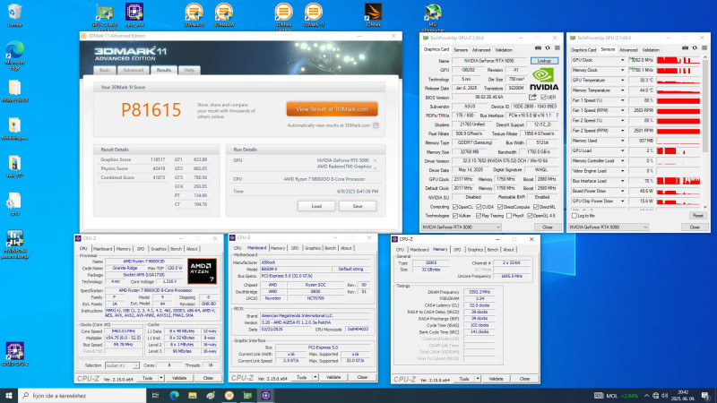 Ryzen 9600x 5730MHz + Geforce 5080 +500MHz GPU és +3000MHz memória,