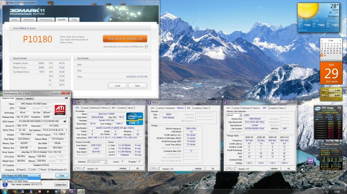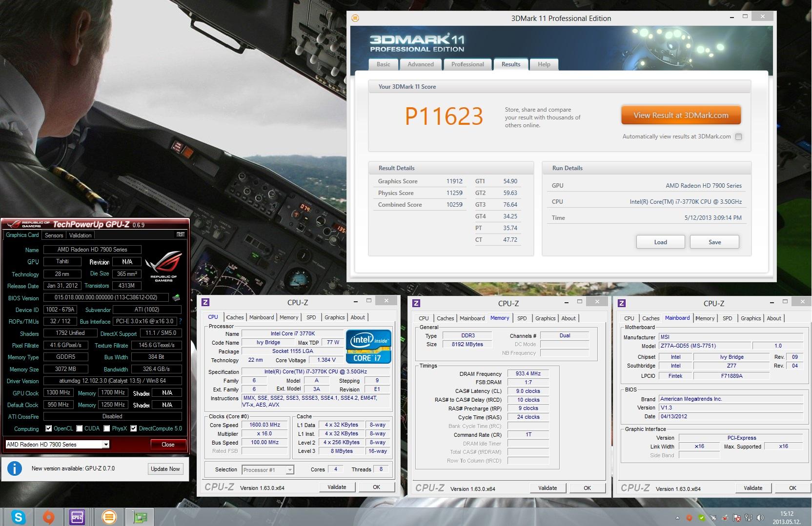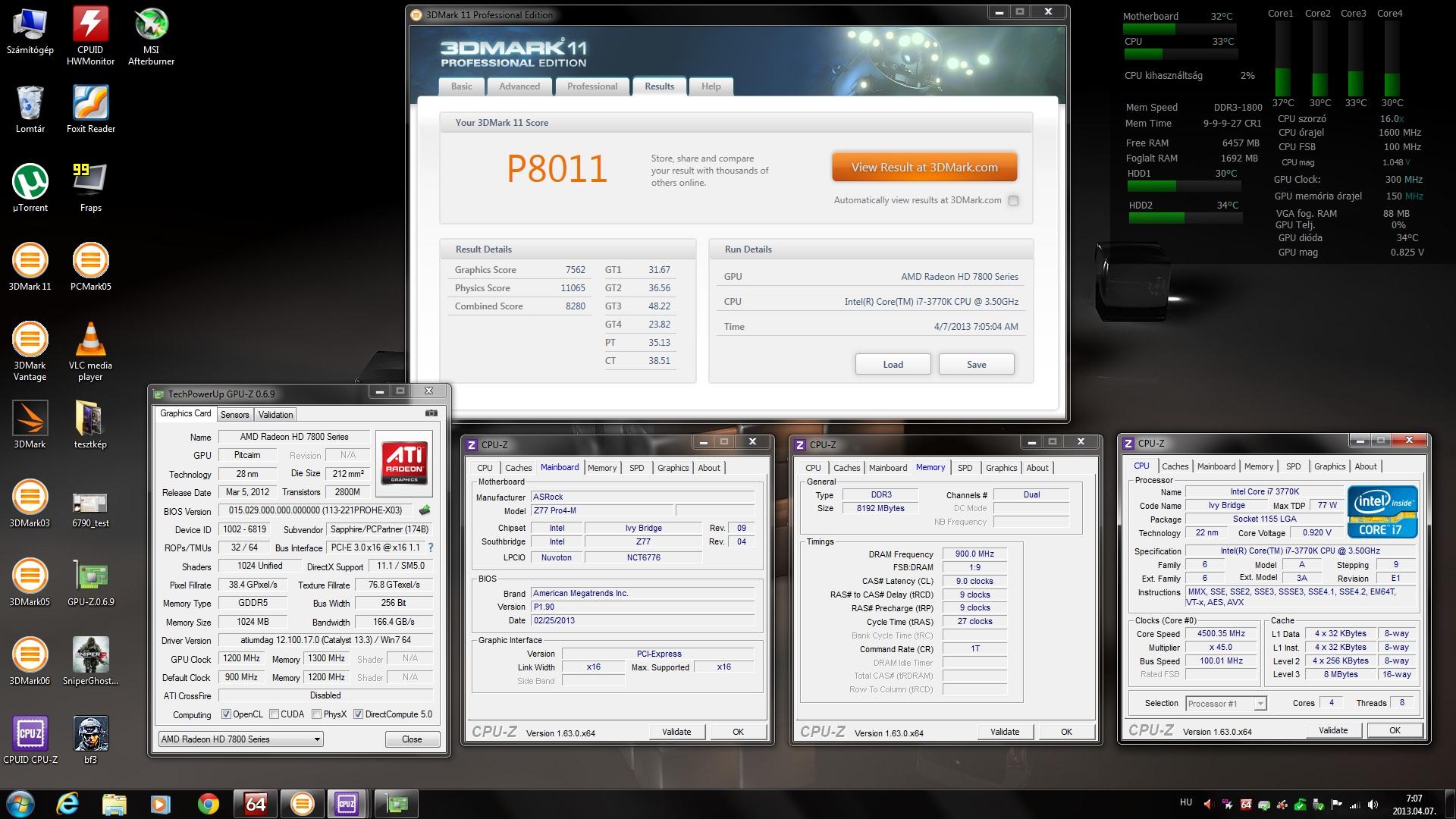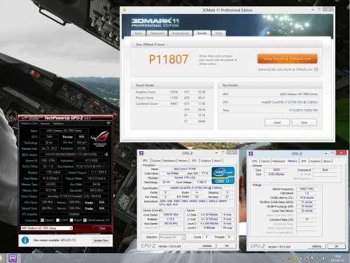 Screenshot készítése, melyen látszik az eredmény, két Cpu-z ablak, egyikben a processzor, másikban a memória (SPD és alaplap fül nem kell) és egy Gpu-z ablak. A shot-nál szintén látszódnia kell az összes részeredménynek! Pl.:1. Ehhez Advanced/Professional Edition szükséges vagy olyan Basic Edition, ahol a 3dmark.com-ra linkelt eredménynél látszik az összes részeredmény! -