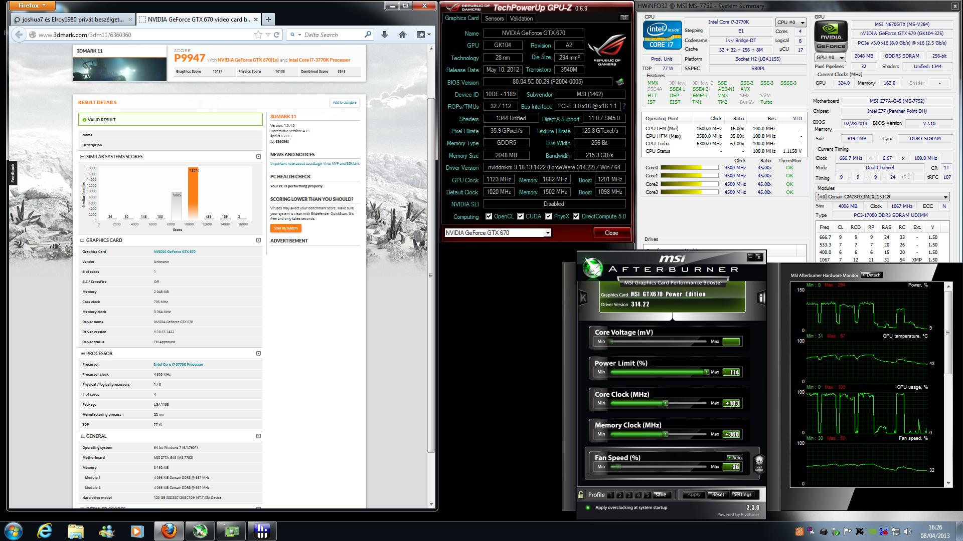 MSI GTX680 Lightning 1291/7302,I7 3770K-4,5ghz,2x4gb 2133 CL11