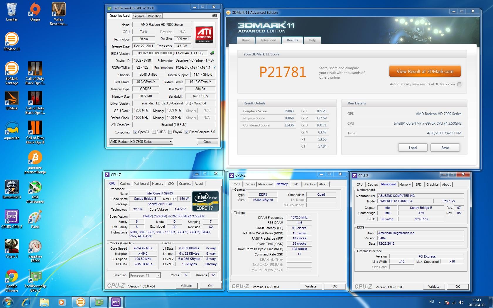 Sapphire & Gigabyte HD 7870 2GB CrossFireX 1150/1450Mhz gyári hűtések.