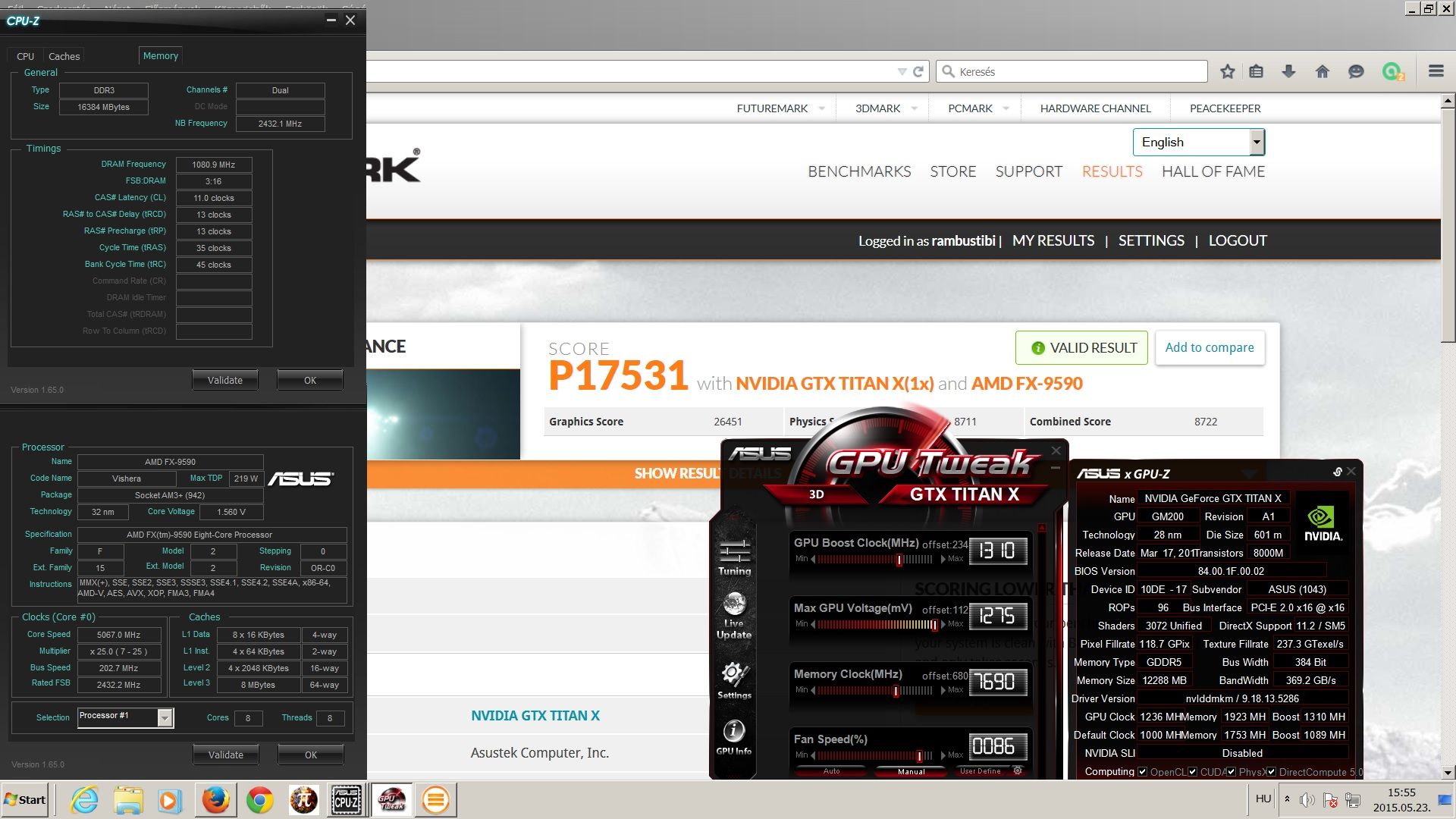 A mostani eredmény 9800 környéként volt, úgy hogy még a fentihez képest +25Mhz GPU, +150Mhz Ram volt.