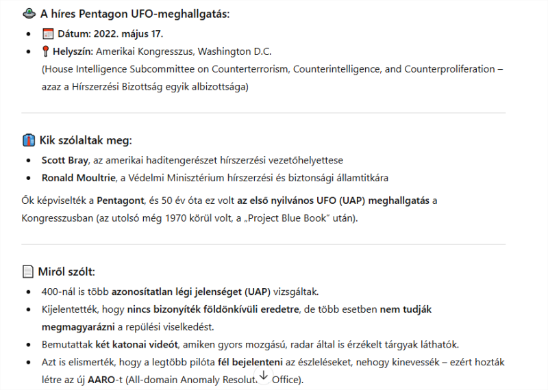 1: melyik volt az a híres pentagoni ufo meghallgatás