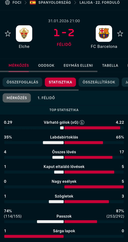 Tök tudja, nem néztem. Az Arsenal ellenit is csak a kiállításig. 🤷