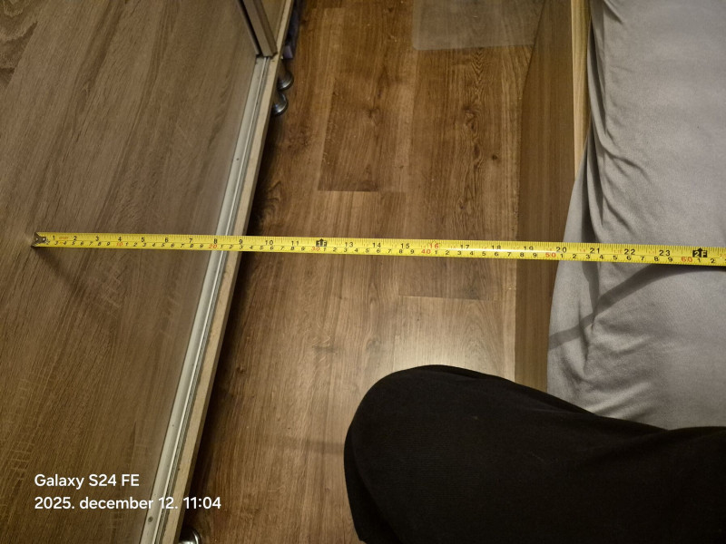 Ennyi maradt szabadon az 140x200-as ágy, és a 230 cm magas szekrény között. 😅