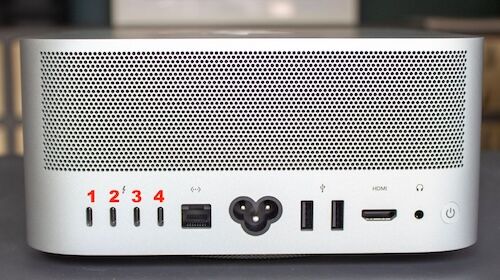 Ha a két (kiegészítő) monitoromat az 1-2 lyukba dugom, akkor a thunderbolt drive megy a 3 vagy 4 porton.