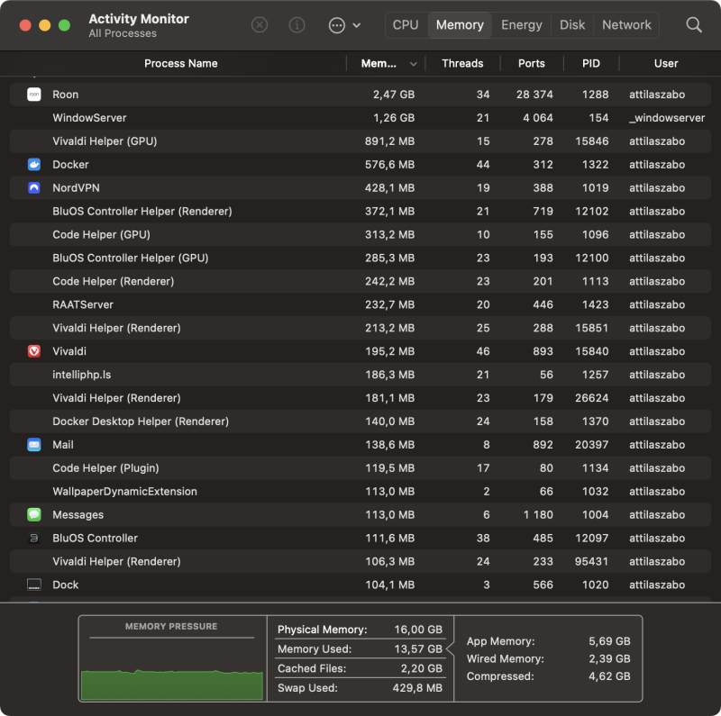 A jó dolog, hogy ha a karakteres Linux-shelleket használtad, akkor a macOS-en nagyon otthon fogod érezni magad (zsh a default, de van bash is alapból, be is lehet állítani defaultnak azt is egyetlen parancssal).Csak érdekességként, a többieknek is, a memóriakezelés hatékonyságának margójára, jelenleg épp ezek futnak nálam a 16GB RAM / 1TB SSD M2Pro-mon: