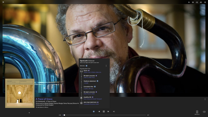 - külön desktopon Roon, amely épp lejátszik, konvolúciós filteres DSP-zéssel, külső DAC+fejhallgatóra (direkt említem, mert ez eszik a legtöbb memóriát)
