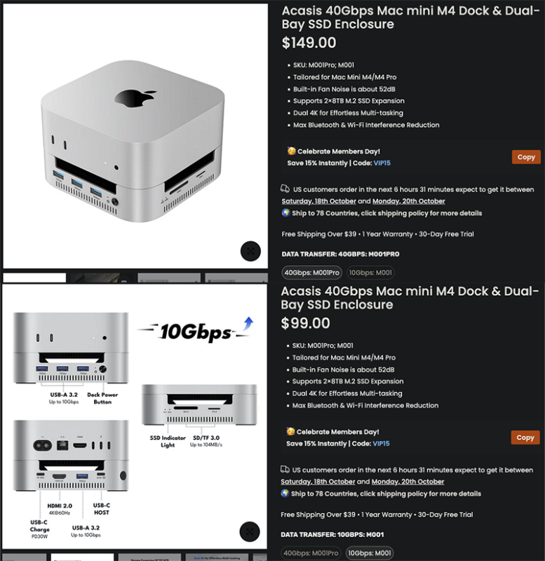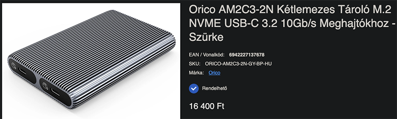 Nekem van egy Orico Minilink dokkolóm [link] , de nekem nem vált be. Rendszeresen magától lecsatolódott az SSD, sőt, olyan is volt, hogy újraindult a Mac. Nem tudom, hogy vajon a benne lévő SSD-t nem szerette-e (Samsung 990 Evo Plus 2TB), vagy más baja volt, mindenesetre ugyanaz az SSD egy ugreen házban azóta is gond nélkül működik. Mivel problémám volt vele, eladásra nem akarom meghirdetni.