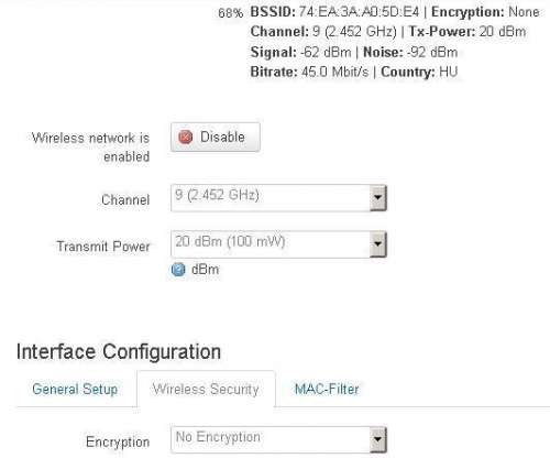 GUI nélkül ezt hogyan lehetne kivitelezni?A LuCi-t azért mellőzném, mert ha azon US-t állítok be országkódnak, kiválasztom a megfelelő csatornát, amelyiken engedélyezett lenne akár 30dBm is, majd megpróbálom bekapcsolni, akkor látszólag bekapcsol, valójában nem történik semmi.