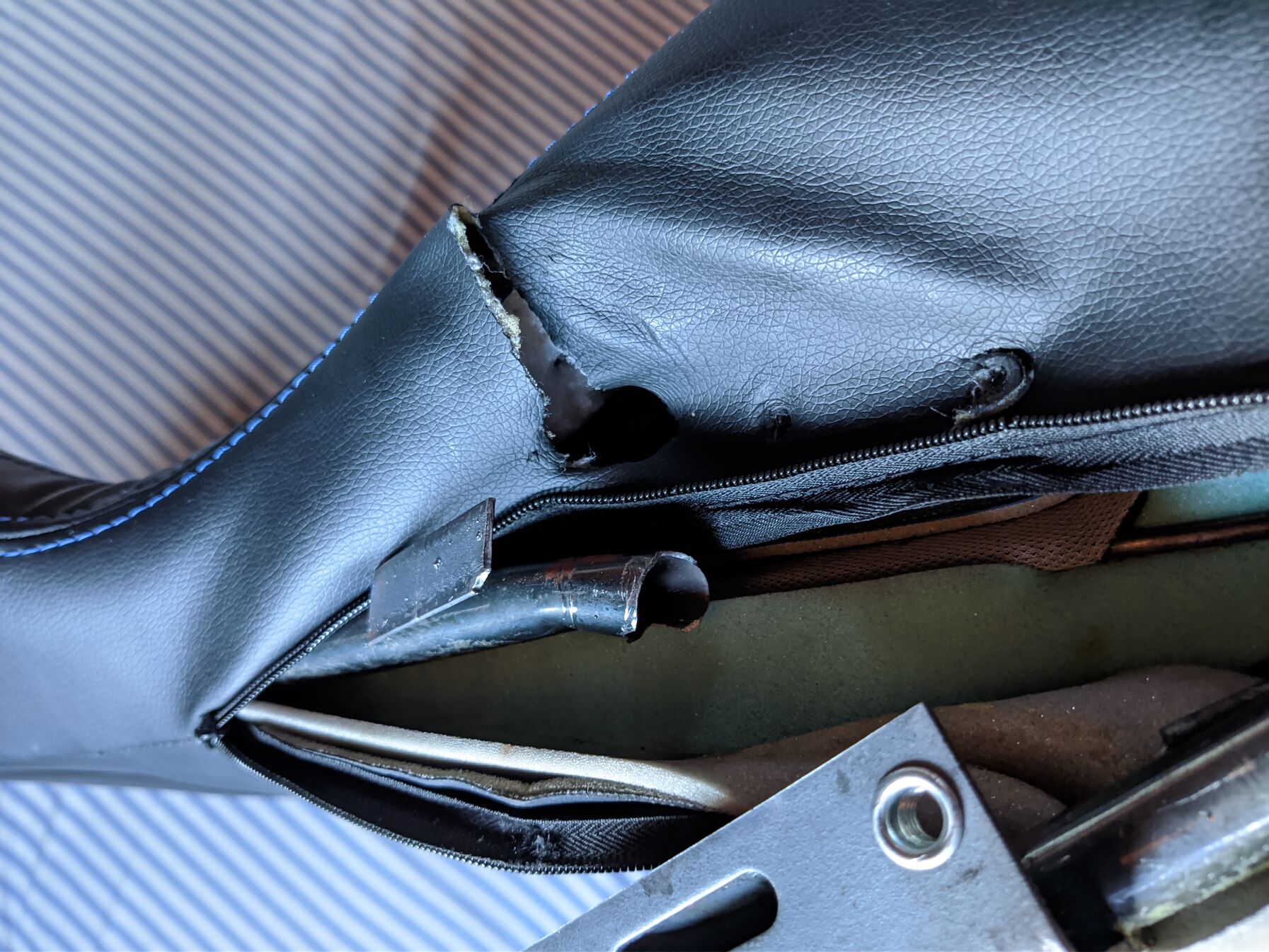 Az gond evvel a konstrukcióval, hogy az egész súlyt csak a jobb oldalon tartja ez a vas cső a rugómechanikától felfelé. Bal oldalt sima zsanér van, az ugye a hátradőlésnél nem tart semmit. Szóval ennek a szar csőnek kellene megtartania féloldalt a teljes súlyt.