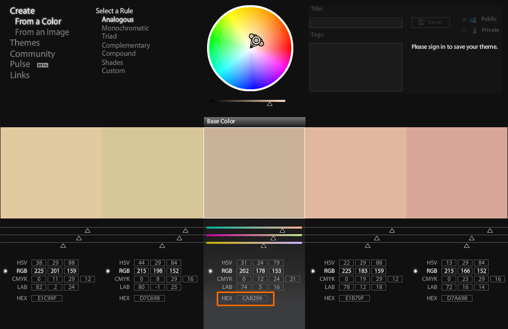 És egyáltalán nem fontos, hogy csak efféle homokszínekből álljon. Ha már meg van adva, kattintgasd sorban végig a kuler lehetőségeit. A triád, a monokróm vagy a komplementer egész érdekes színösszeállításokat ad. De ezek mind harmonizálnak majd egymással egy weboldalon.