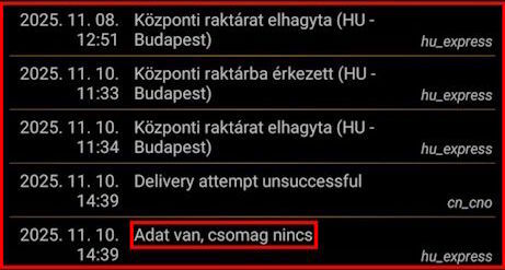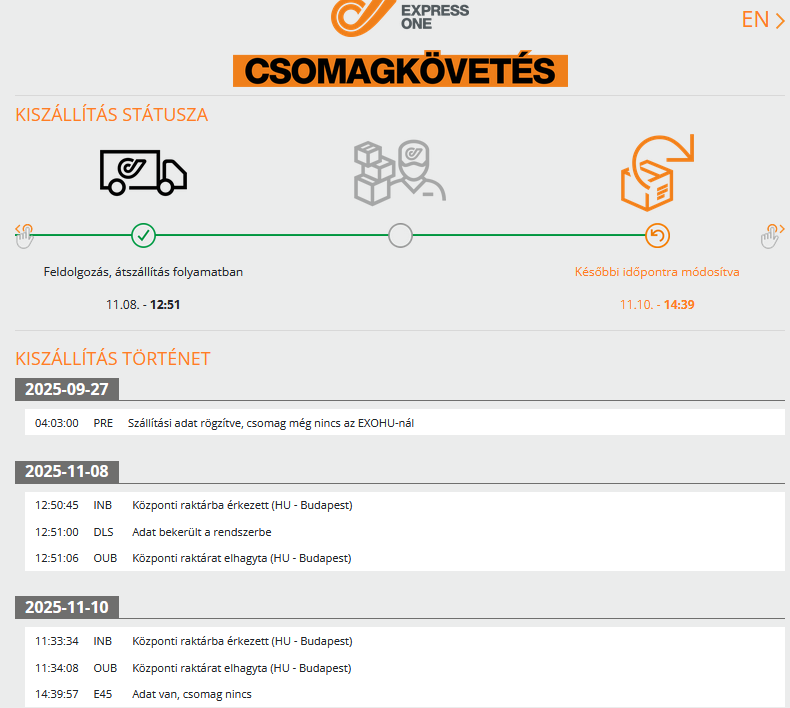 European Chinese Supply Chain Zrt még irányítószám megadása után látja, hogy átadva. Tőlük megkérdezzem?