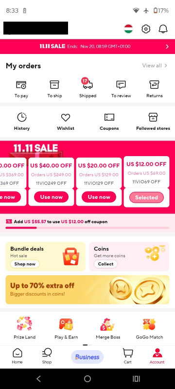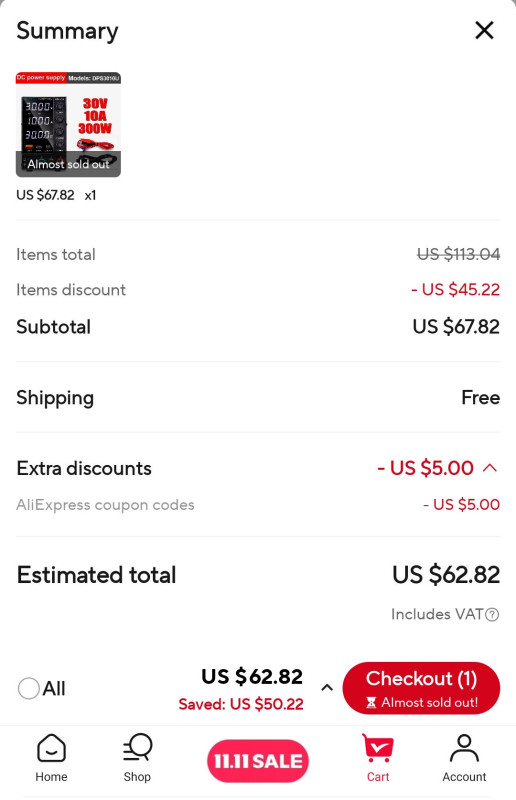 Nálam nem működik a 11.11es akció 15€ feletti -3€os 11VIO15 kód 🤔