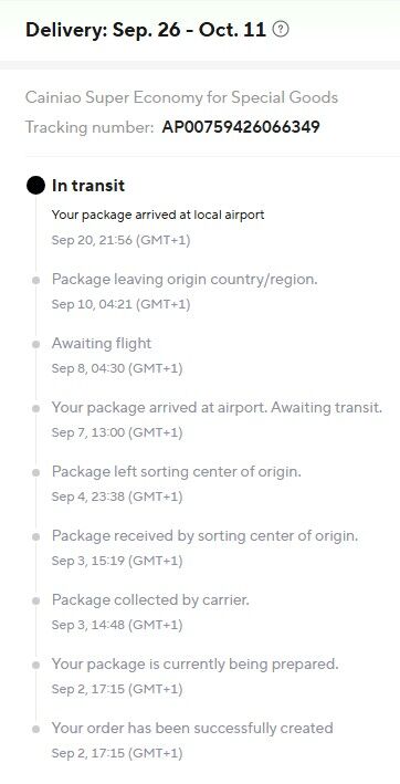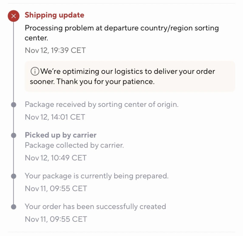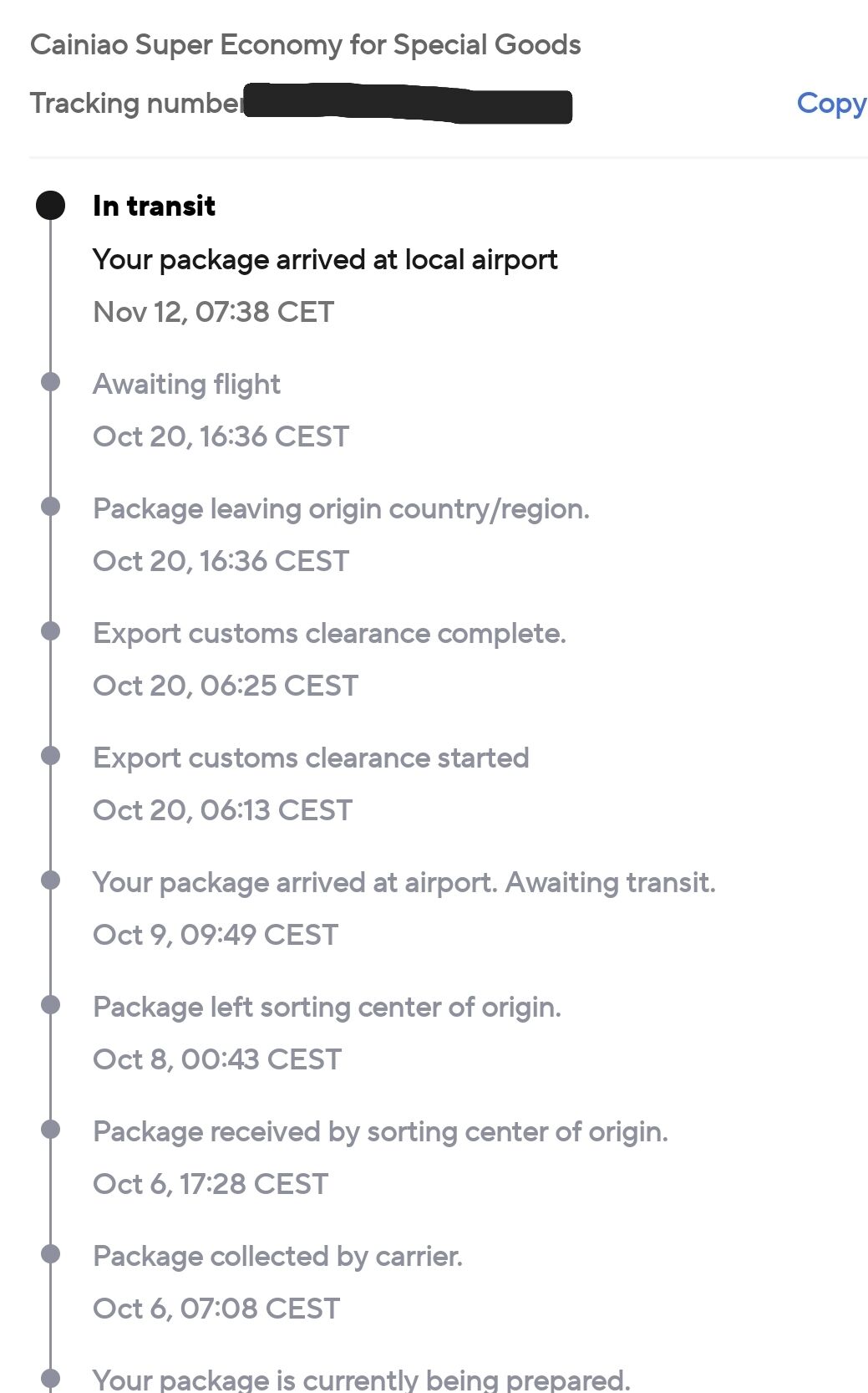 Kis apró érdekesség, szerintem ez a csomag rekordgyanúsan lassú, igaz, volt közben valami "Due to unforeseen logistics issue, your order might be delayed by 10-15 days." Szeptember 28-án rendeltem, 0.5 $-os almaszeletelő vacak.