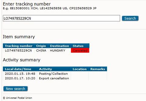 A Nemzetközi Postai Uniós nyomkövető is nem kézbesítést ír.